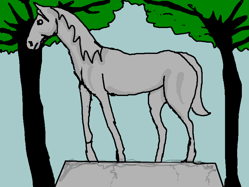 In the park where we were walking, there is a large horse statue. We had passed the statue many times without incident, but for some reason, on that day, the simple dog became highly alarmed by it.